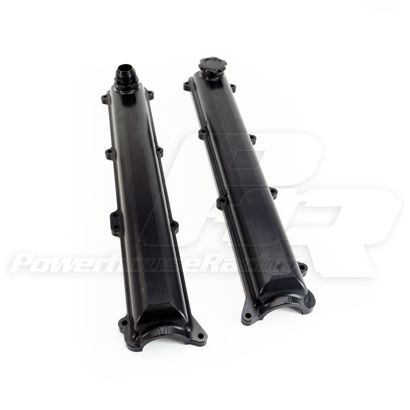 Powerhouse Racing Billet Valve Covers are precision machined from solid 6061 billet and retain OEM fitment. Weight comes in at only 5 lbs. 14 oz. compared to the stock valve covers at 7 lbs 9 oz.